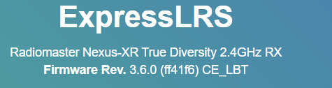 Der integrierte ELRS-Empfänger wird mit ExpressLRS Version 3.5.6 (ISM2G4) ausgeliefert.