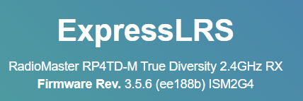 Der integrierte ELRS-Empfänger wird mit ExpressLRS Version 3.5.6 (ISM2G4) ausgeliefert.