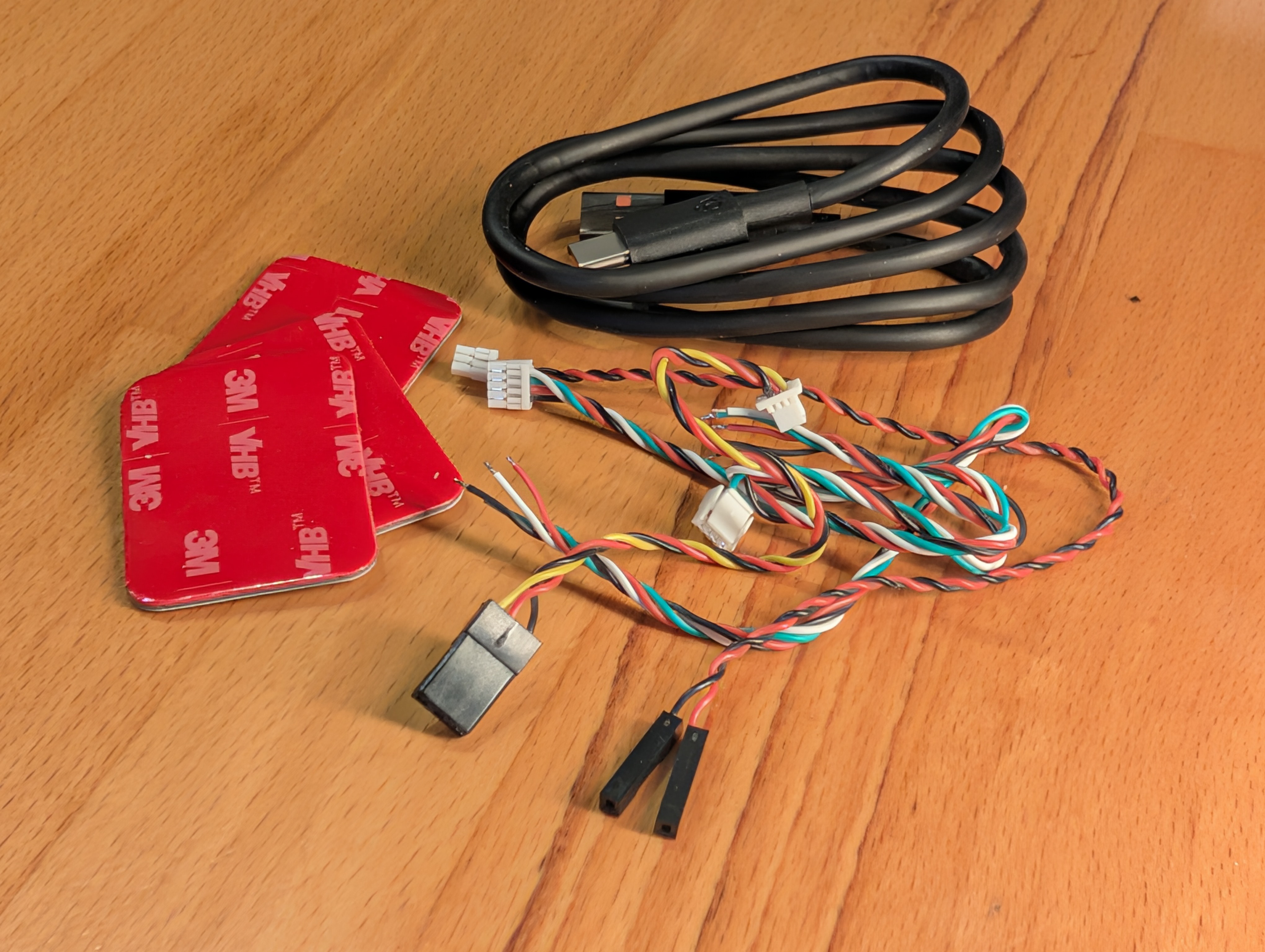 Anschlusskabel sowie passende 3M Klebestreifen.